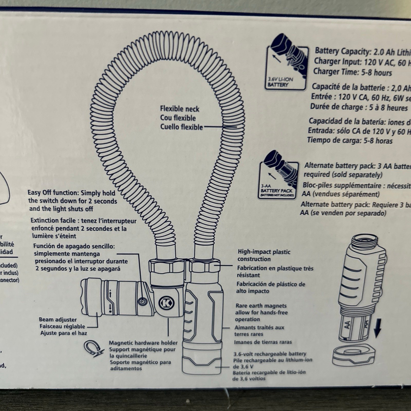 The New KOBALT HyperCoil LED Snake Flexible Cordless Work Light Flashlight is a versatile and practical tool for various workshop and home tasks. With a powerful Li-Ion battery, 200 lm of brightness, and 12 LEDs, this worklight provides adjustable focus and strobe light features. Its swiveling, magnetic, and extendable design, along with a rubber grip and impact-resistant plastic material, make it a durable and convenient lighting solution. With batteries included and the option to recharge, this cordless work light is a portable and reliable choice for any project.